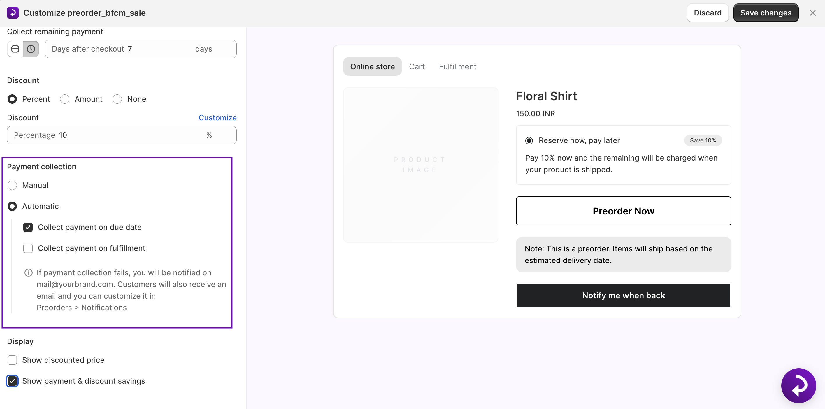 If you already have your preorder offer set up, setting up automatic payment collection in STOQ is easy. You only need to adjust a few settings to collect a deposit upfront and charge the remaining balance later.